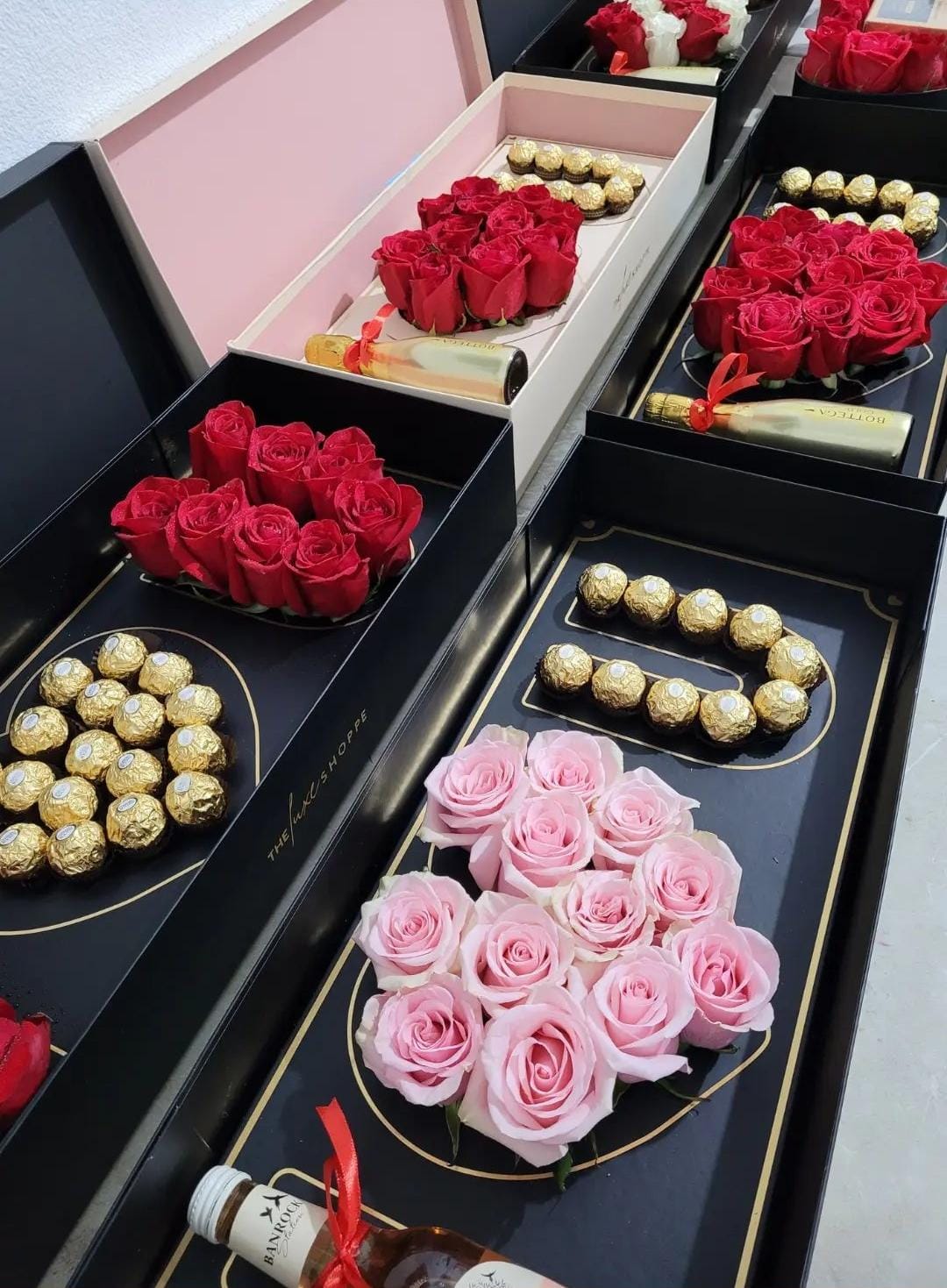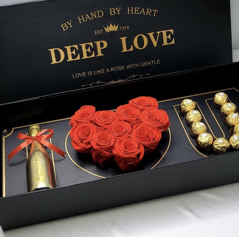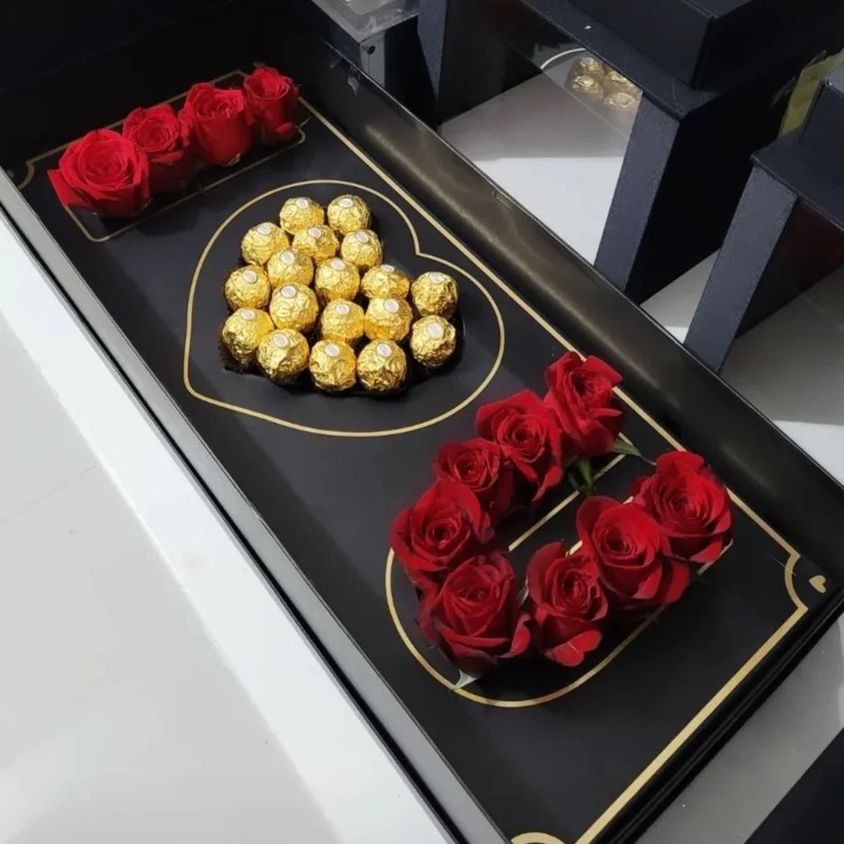 | Options | i love u heart rose, wine & chocolate box, I love u heart chocolate & rose box, I Love U All Rose Box with chocolates |